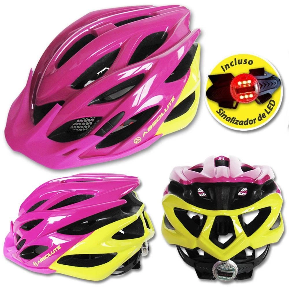 Capacete Absolute Mia conta com várias aberturas de ventilação para melhor respirabilidade. Sua aerodinâmica proporciona um posicionamento ideal na cabeça, garantindo segurança e conforto para você que adora pedalar. Forro removível e lavável. Viseira (aba) removível. Luz traseira (led/pisca) acoplada ao produto. Fitas nas laterais com regulagem de tamanho, proporcionando um ajuste mais preciso, seguro e confortável.